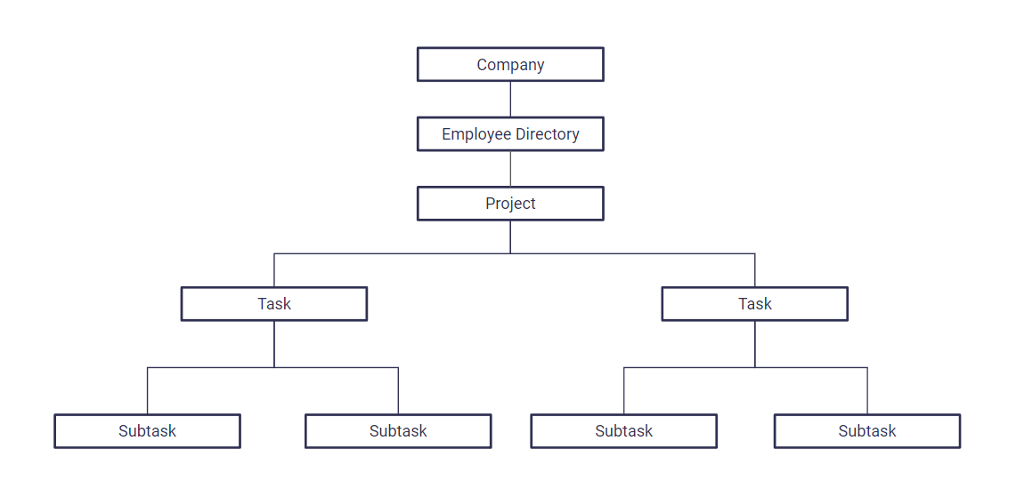 The company is at the highest level of the hierarchy, representing an organization, department, or team. Users can add employees and create multiple projects within the company, which are then broken down into different items, such as phases, milestones, issues, and tasks.